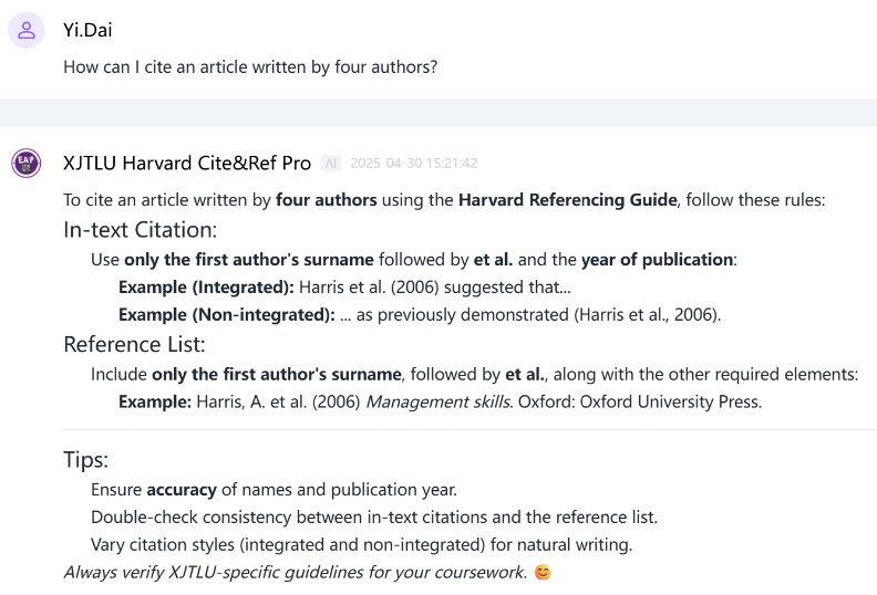 XJTLU Harvard Cite&Ref Pro: https://xipuai.xjtlu.edu.cn/v3/agent/10732