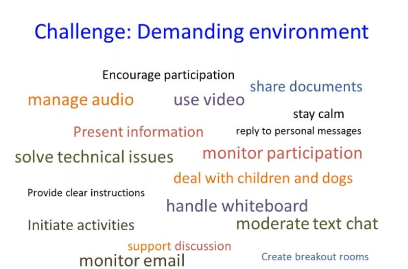 Here are some suggestions: first, link back to the key point that is brought up at the beginning, namely the notion of collaboration. Working with other people can assist you in designing, planning, preparing, and facilitating your sessions. Consider the peer observation approach, where teachers can play a variety of roles in class and offer feedback at the end from different perspectives of how the experience went. One thing I learned while watching another colleague’s class is that she modified a role-play exercise by bringing up cultural references specific to Chinese contexts, and the online students found it more natural and comfortable to engage in the discussion.