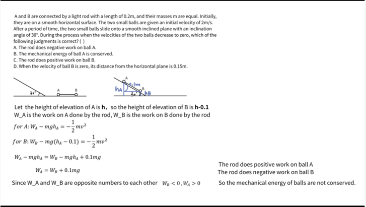 Figure 8. Captured pictures of the video of the third winner: the student created a video to explain mechanical energy in physics and a problem related to the work done for light-rod connected bodies. At the end of the video, it shows how AI was utilized in the video creation.