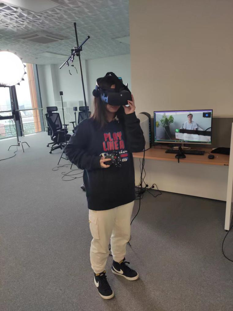 During Academic Year 2022 semester 1, at the Continuing Support (CS) workshops of School of Languages, Mengqi Hu and Rui Xu intended to take the research-led teaching approach, like VR tool called Immerse Me (Figure 1) to evaluate the impacts of the presence and social fidelity of virtual agents on students’ speaking experience in contextual immersion environment. It is a tool for people to practice and improve on language fluency and accuracy in real-life scenarios, while removing classroom walls and connecting with the outside world.