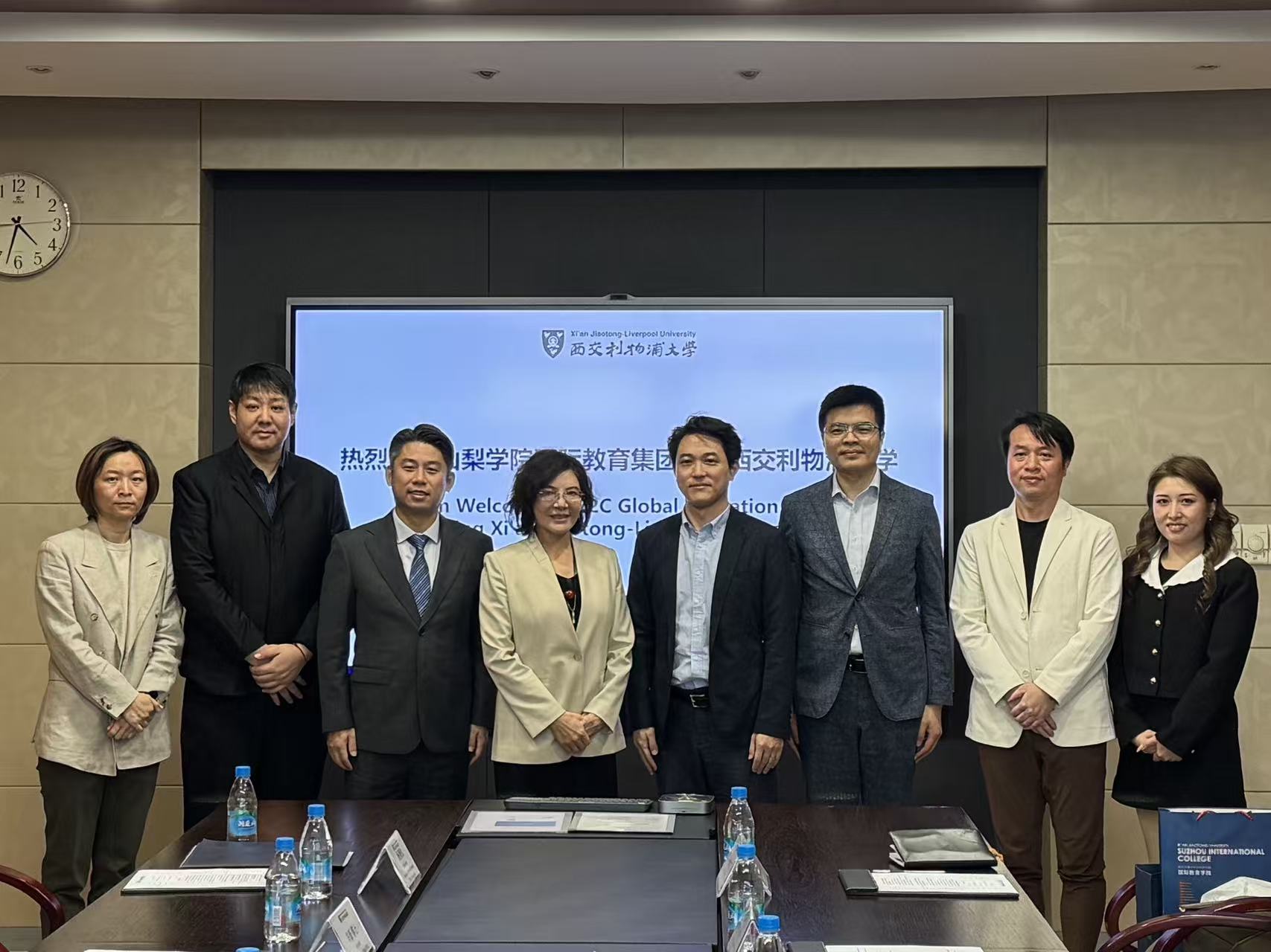 日本山梨学院国际教育集团的来访代表包括理事长古屋光司、理事及山梨学院大学副校长张华博士、中国区副总经理黄钧、中国区渠道主管张季玉。西浦党委书记、副校长钞秋玲教授(下图左四),首席数字官、知识与信息中心主任毕新博士,西浦学习超市副主任王婧以及学习超市商务与产品经理杨智钦出席了座谈会。