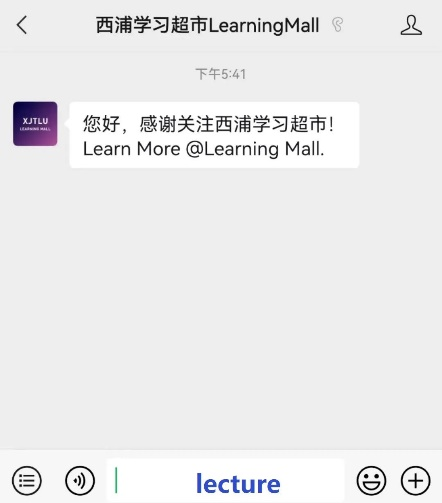 1. 关注“西浦学习超市Learning Mall”微信公众号。