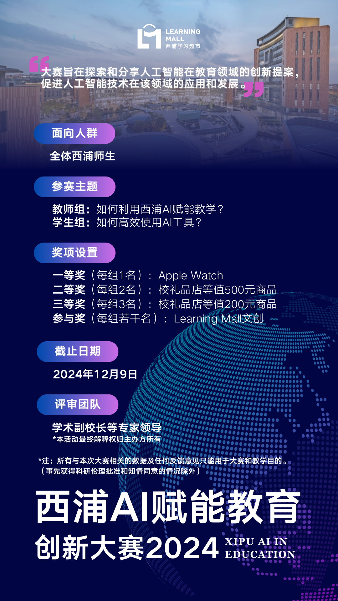 人工智能(AI)技术正在迅速改变教育领域。为积极推动AI赋能教学、提升高校教育教学效果,西浦学习超市将面向全体师生举办2024“西浦AI赋能教育”创新大赛。大赛旨在探索和分享AI在教育领域的创新提案,促进AI技术在这一领域的应用和发展。