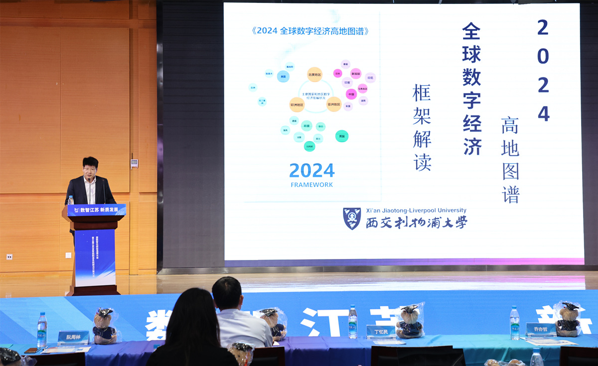会上,西浦副校长阮周林教授代表西交利物浦大学发布《2024全球数字经济高地图谱》并对图谱进行了解读。《2024全球数字经济高地图谱》由西浦产业家学院数字化转型研究中心和西浦学习超市共同编撰,图谱汇聚全球数字经济领域的前沿案例与创新成果,为产业数字化转型提供了新视角。