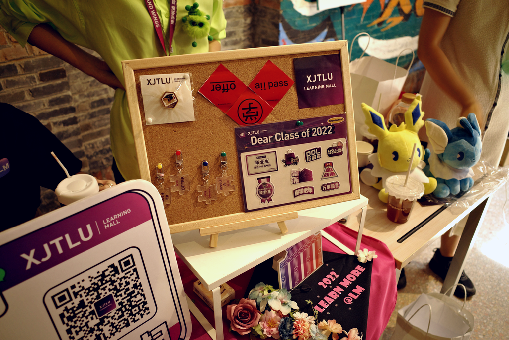 活动期间,学习超市分别在学校中心楼与南北隧道设立活动展台,包括展出毕业拍照背景板、分发学习拼图挂件、学习超市徽章、水杯、贴纸、手袋以及进行其他活动彩蛋。